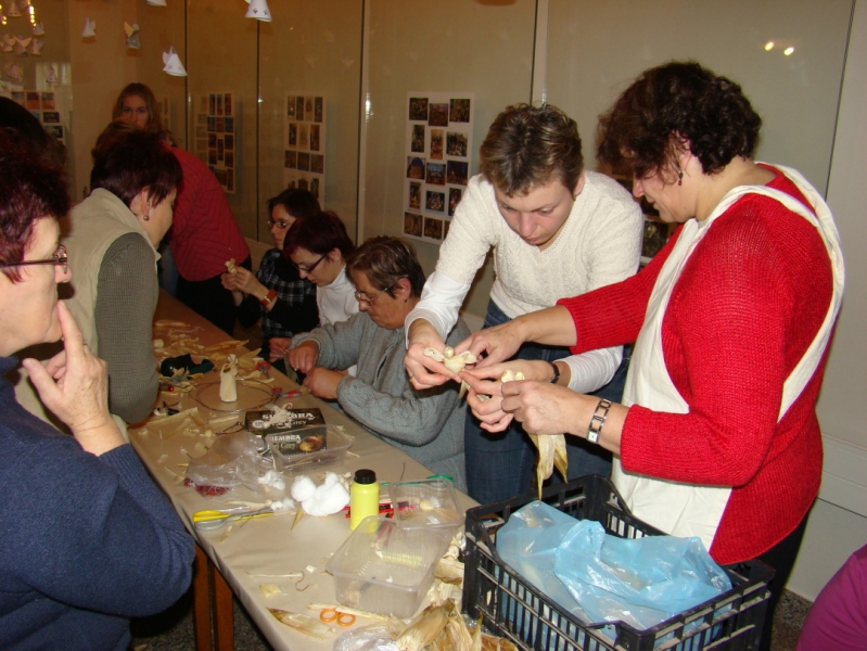 První dvě dílny, jež proběhly v první a druhou adventní neděli, se setkaly s velkým úspěchem. V rámci první dílny, „provoněné dřevem", jste měli příležitost nejen přihlížet, jak řezbáři vyrábí figurky svých dřevěných betlémů, ale sami jste si mohli zkusit vyrobit postavičku z kukuřičného šustí či další ozdoby pro zkrášlení předvánoční domácnosti pod vedením výtvarnice paní Terezie Uherkové.