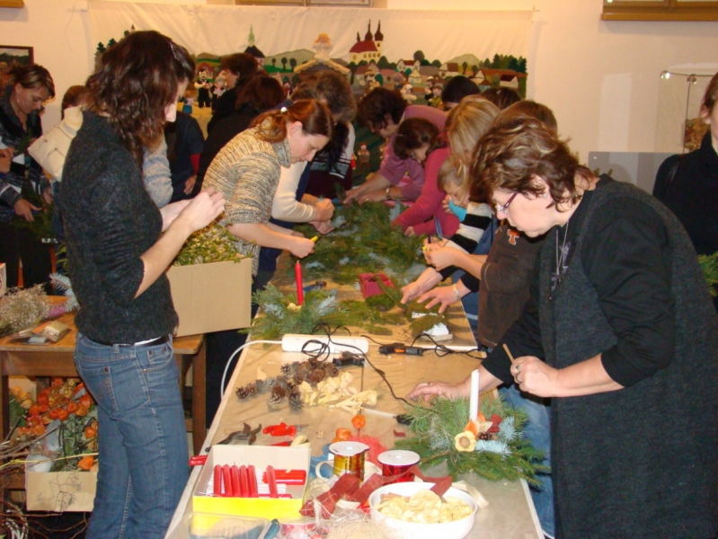 Během druhého nedělního adventního odpoledne „rozzářeného svící" jste si vytvořili krásný svícen na vánoční stůl ze smrkových větví, sušeného ovoce, šišek a dalších přírodních materiálů. V malém výstavním sále jste si pak mohli vyrobit originální novoroční přáni nebo jmenovky na vánoční dárky z různě dekorovaných papírů.